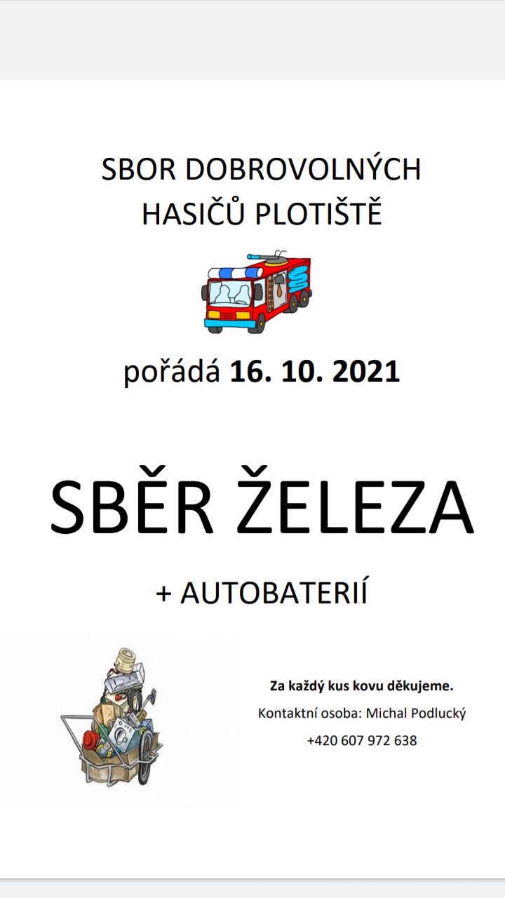 SDH Plotiště nad Labem pořádá sběr železa a autobaterií dne 16. října 2021