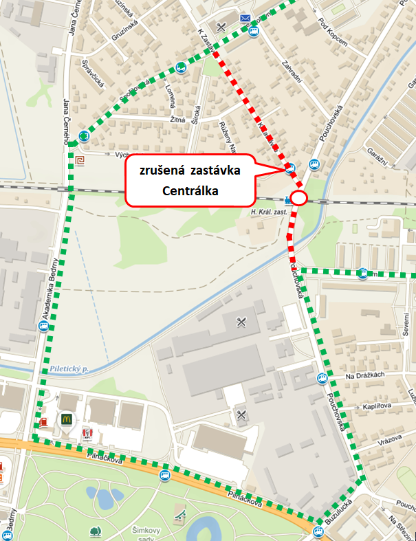 Po dobu této uzávěry nebude v obou směrech obsluhována zastávka Centrálka.